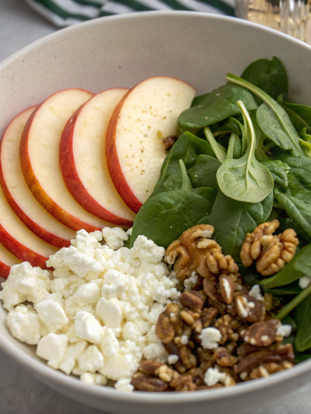 6 cups mixed greens (spinach, arugula, or spring mix): serve as your canvas here. I personally love using a mix that includes some peppery arugula because it adds a little bite that contrasts beautifully with the sweet apples.
