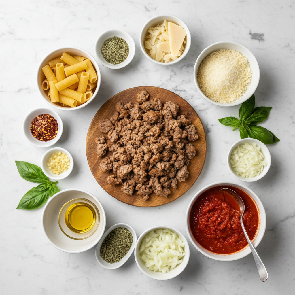 Creamy, comforting, and loaded with flavor, this Italian Sausage Rigatoni is your new go-to weeknight pasta. Rich tomato sauce, savory sausage, and Parmesan make it an instant family favorite.